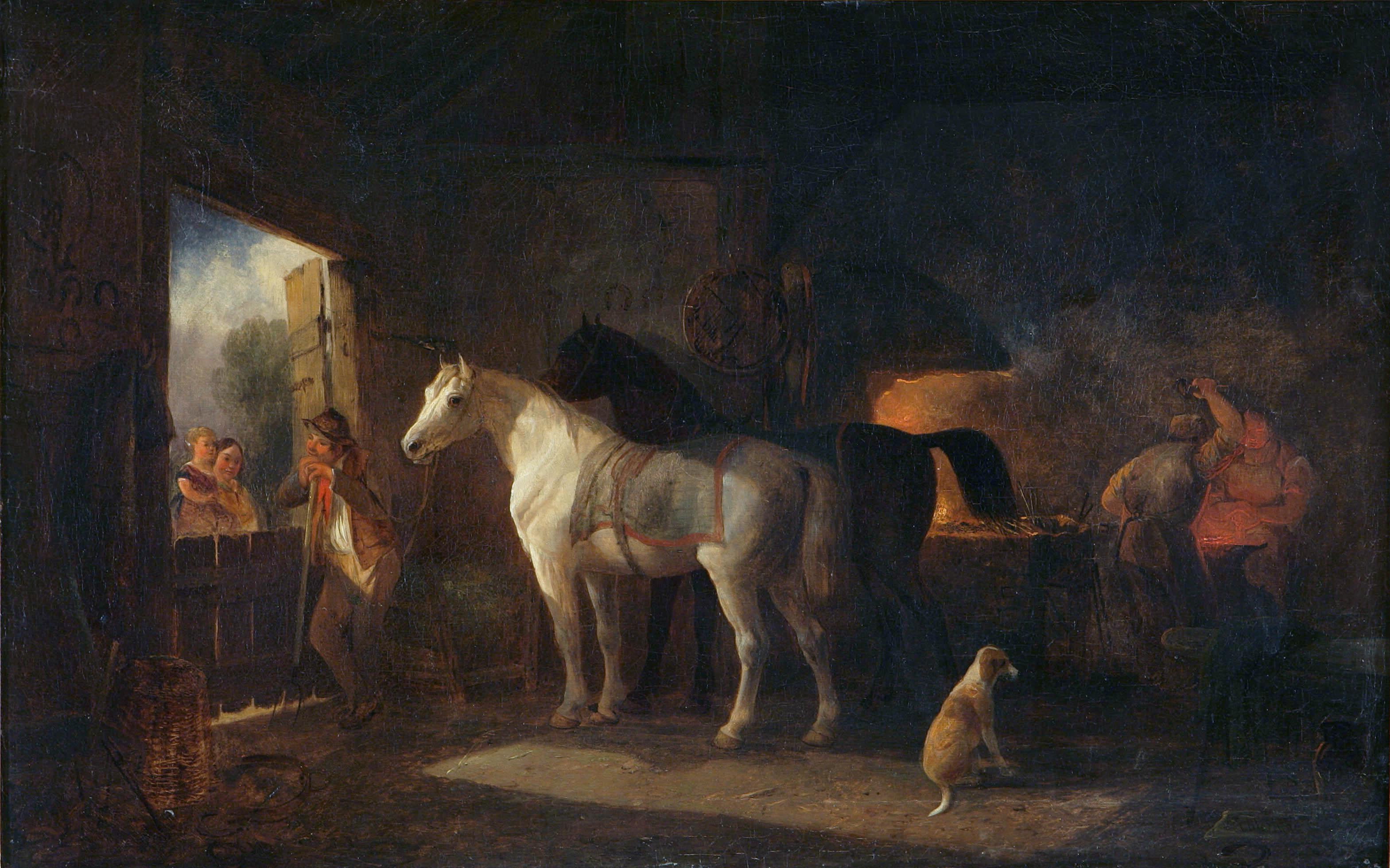 MORLAND GEORGE (1763 - 1804) Dal maniscalco. Olio su tela. Cm 49x76. Firmato