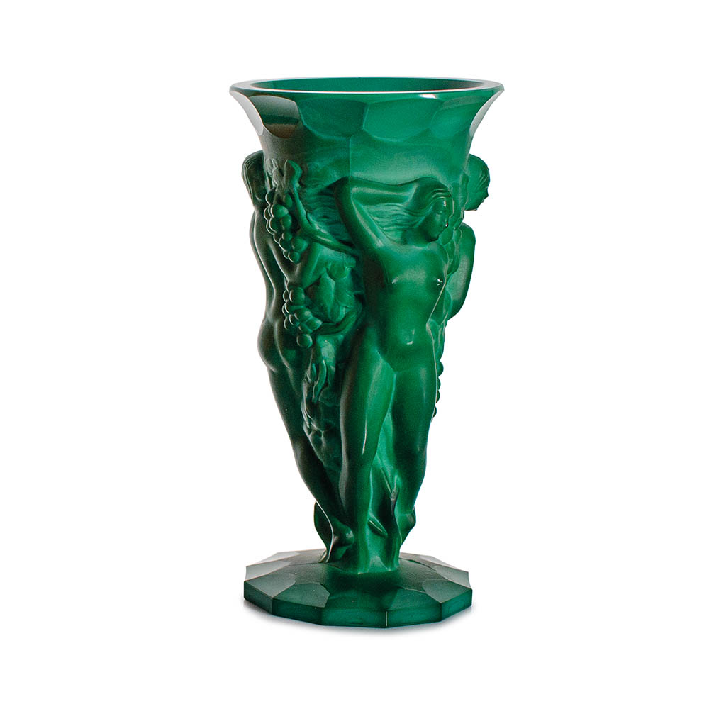 FRANTISEK PAZOUREK, VETRERIA CURT SCHLEVOGT, Vaso della serie “Ingrid” in vetro verde lavorato per imitare la malachite.