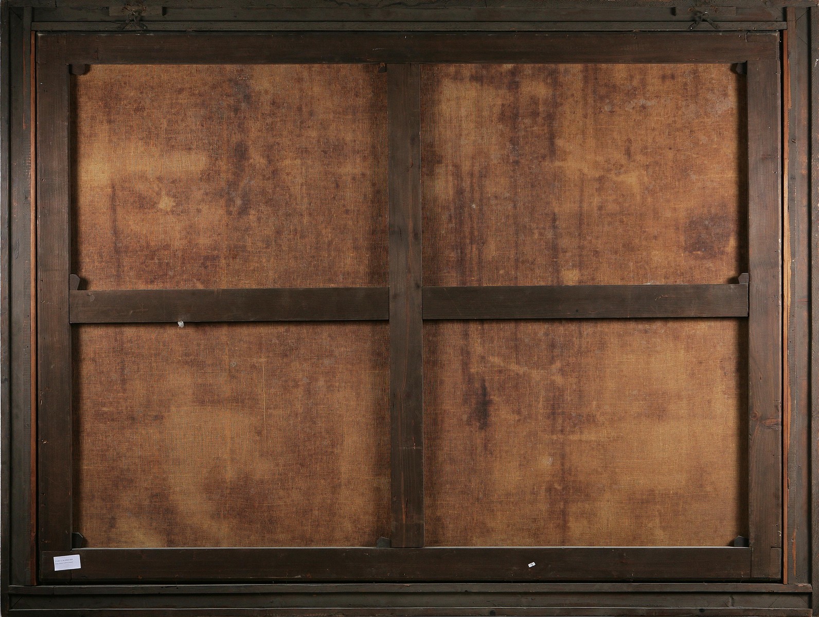 MULIER PIETRO detto CAVALIER TEMPESTA (1637 - 1701) Pastore e fanciulla su un asinello con ponte e abitazioni sullo sfondo. Olio su tela. Cm 180x200. Monogramma in basso a sinistra. Opera con certificato di esportazione - Export licence provided