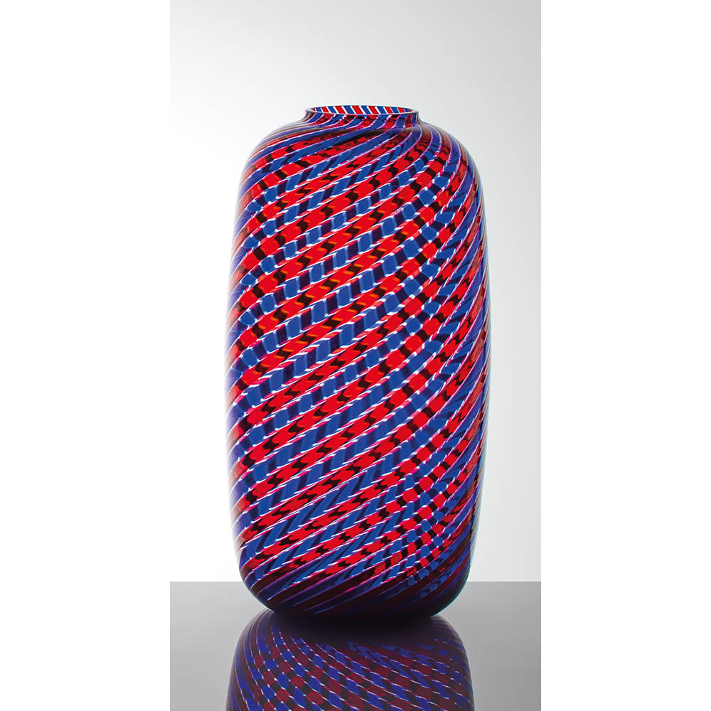 VENINI - Vaso a canne ritorte alternate nei toni del rosso e del blu, 1995.