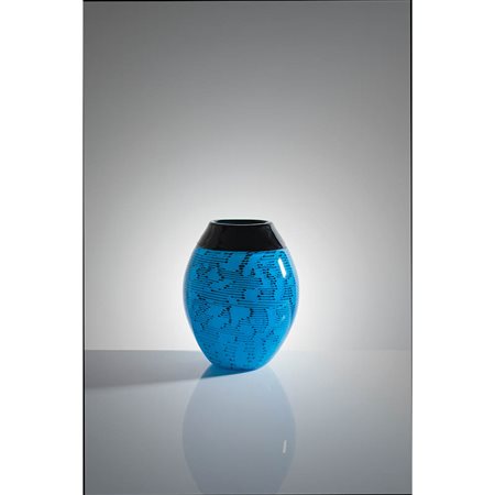 CENEDESE - Vaso in vetro ad incalmo nei toni del turchese e del nero decorato a segmenti irregolari, anni ‘80.
