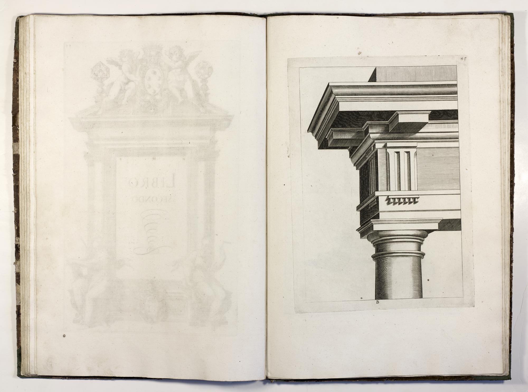 Descrizione: 1 frontespizio allegorico con cornice architettonica, 3 carte di dedica e indice + 43 tavole calcografiche numerate con testo a fronte; 1 carta di colophon con grande marca xilografica 2 22 tavole incise in rame (incluso il frontespizio della seconda parte) numerate 44-65. Buon esemplare con tavole con bella e fresca inchiostratura. Legatura in mezza pelle ottocentesca con tassello dorato e titolo al dorso. Vecchio ex-libris all'interno del piatto anteriore. Rara prima edizione di questa importante opera sulla prospettiva, unanimemente lodata dai repertori per la completezza e la bellezza delle sue incisioni: 2 frontespizi incisi e 65 tavole, 43 di schemi prospettici generici e proiezioni di vari oggetti accompagnate da altrettanti capitoli con dimostrazione scientifica e 22 di elaborate raffigurazioni prospettiche di edifici e solidi geometrici. Cfr. Adams S-1224; Berlin Kat. 4700; Cicognara 860: «Questa e la piω elegante delle edizioni di libri prospettici per i tipi, pei caratteri, per la carta».
