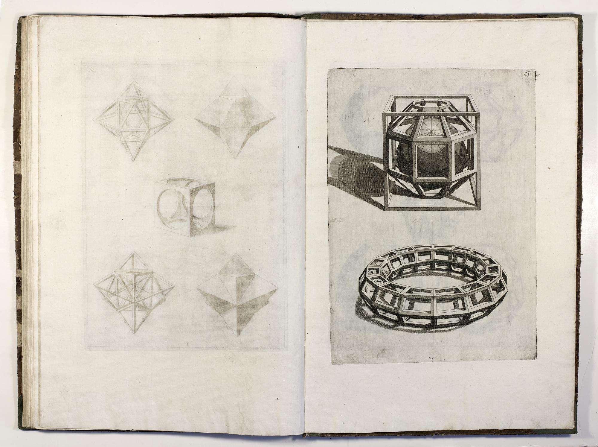 Folio (425x275 mm). Two parts bound in one on later half leather with gilded title on spine. Old ex-libris on binding. Engraved title-page. With Medici coat of arms arms at the top and those of Sirigatti at foot of title-page, repeated on title-page of part two. Large woodcut printer's device at the end of the volume. Light occassional discolouring, but overall in very fine condition. 1 ff. (allegorical titlepage), 3 ff. (of dedication and index), 43 plates numbered with parallel text, 1 f. (large woodcut printer's device), 22 copper engraved plates (including the title-page of the second part) numbered 44-65. i.e. 65 plates in total - fully complete. The rare first edition of this most important work on the art of perspective: "Questa e la piω elegante delle edizioni di libri prospettici per i tipi, pei caratteri, per la carta" (Cicognara 860). Sirigatti's work is famous for being one of the very earliest thorough works solely dedicated to the art of perspective. Combining the visual language of the German book tradition of Lencker and Jamnitzer with the Italian tradition of linear perspective treated previously by Serlio and Barbaro and earlier that of Leon Battista Alberti (unillustrated), as applied to stage design and architectural theory, this is one of the seminal Italian works on the subject of perspective. Presumably this work functioned as basis for Galileo s drawing technique.The book quickly became very popular and several Italian editions were reprinted in the 17th century; its reputation was so long-lived that an English translation was published no less than 160 years after the original. The work is divided in two parts: The first part is dedicated to the elementary rules of perspective to plane and solid geometric figures (which also contain musical instruments like the lute (plate 41 and 42)). The second part depicts architectural elements, facades of palaces and churches, in polyhedrons of various forms and regular Platonic solids, with several references to Luca Pacioli's "divina proportione". Furthermore, Sirigatti famously contributed to the study of theatrical perspective: "He is the first to mention that the full effect of the perspective frame, for instance in a stage set, can be enjoyed only by those sitting along the main axis. This is a fundamental aspect of absolutist theater that no doubt had been noticed by designers of princely entertainments earlier, but is first commented on in print by Sirigatti, whose observations were taken up more extansively by Pietro Accolti." (Millard).Two problems were endemic in perspective designs. First, because perspective scenery exploits the difficulty of the eyes in judging the sizes and distances of objects, it works best by assigning the spectator to a single point of vision and manipulating relative magnitudes to make small images represent objects that are larger and farther away. Second, the apparent magnitude and distance of painted objects tended to clash with the fixed size of live actors when applied to the theater, threatening to produce absurd combinations of scale when performers wandered upstage. Sirigatti was first to "acknowledge the problem of spectator position. Sirigatti proposed a way to combine a painted perspective backdrop with fixed three-dimensional scenery that diminished in size as it neared an upstage vanishing point". (Camp, The First Frame). Sirigatti was not only influential in the theory of architecture and stage design.