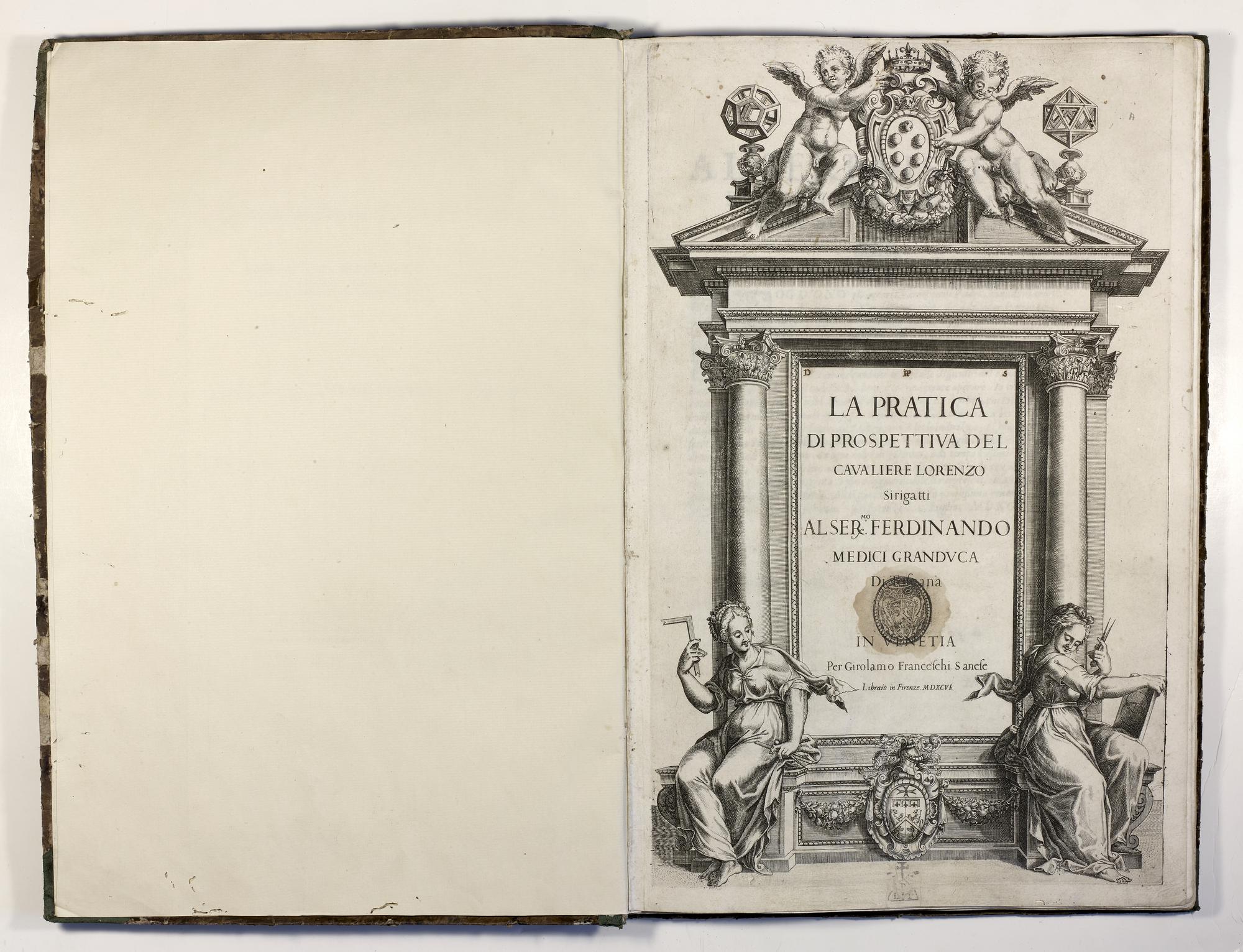 La pratica di prospettiva del Cavalier Lorenzo Sirigatti Al Ser.mo Ferdinando Medici Granduca di Toscana. In Venetia Per Girolamo Franceschi Sanese, 1596