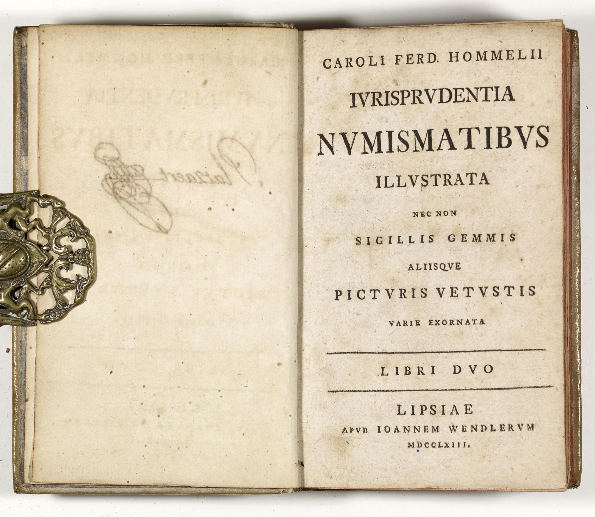Caroli Ferd. Hommellii Iurisprudentia numismatibus illustrata nec non sigillis gemmis aliisque picturis vetustis varie exornata. Libri duo. Lipsiae Apud Ioannem Wendlerum. 1763