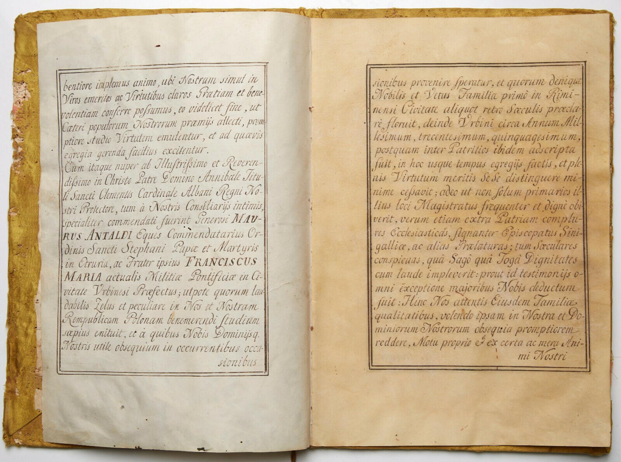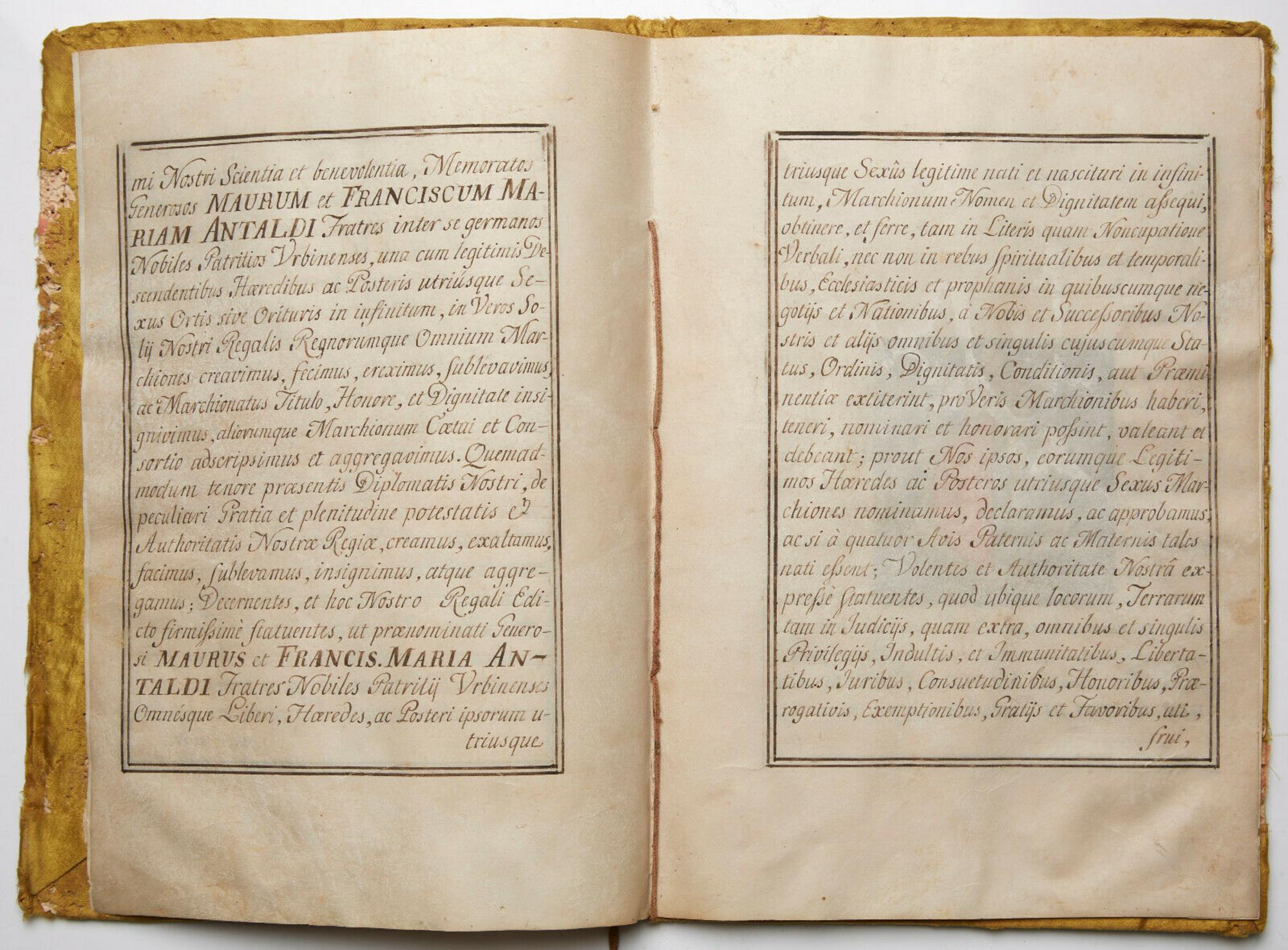 Diploma of appointment as Marquis of the noblemans of Urbino Mauro and Francesco Maria Antaldi.