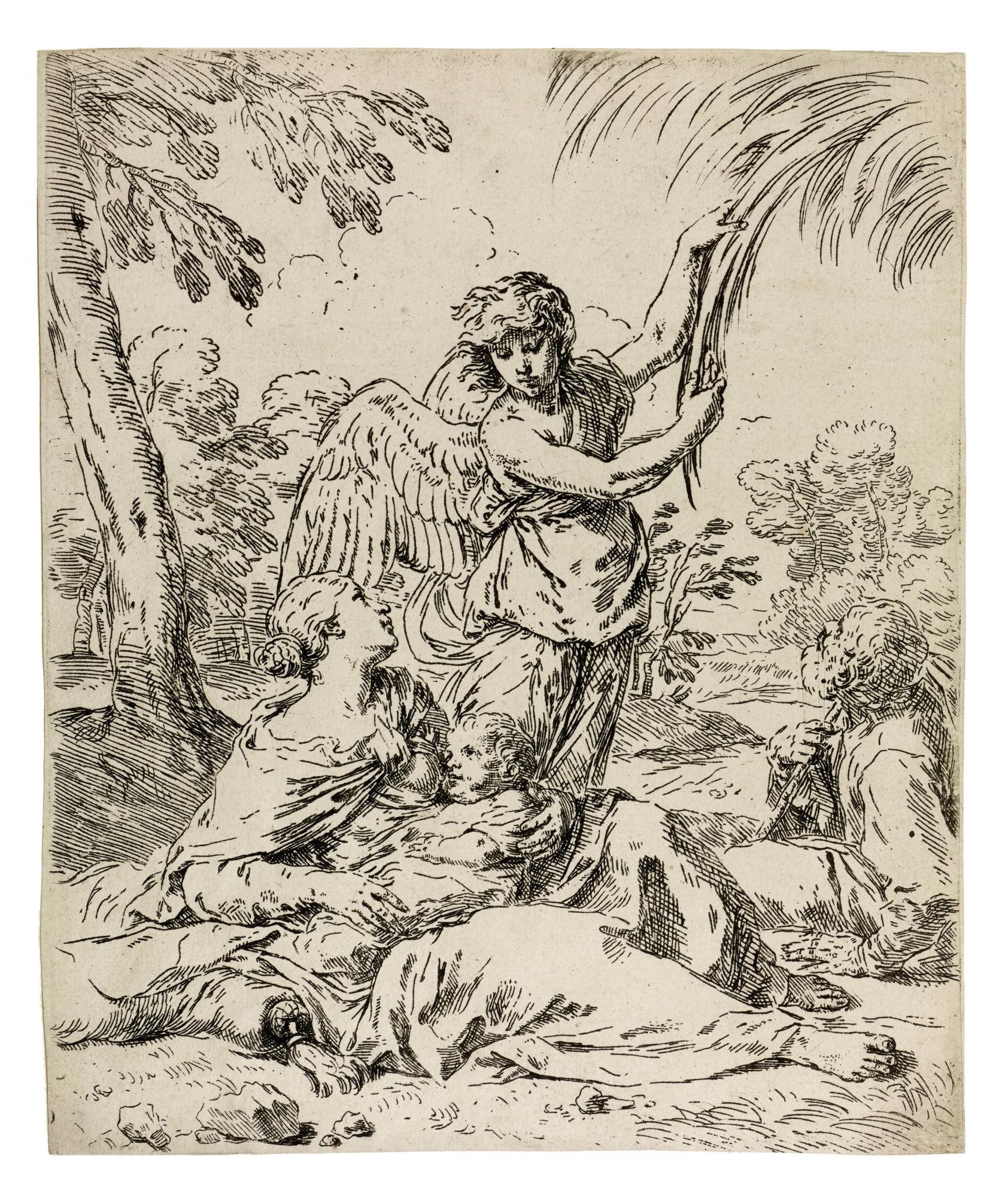 Simone Cantarini (1612 - 1648) RIPOSO NELLA FUGA IN EGITTO acquaforte, cm...