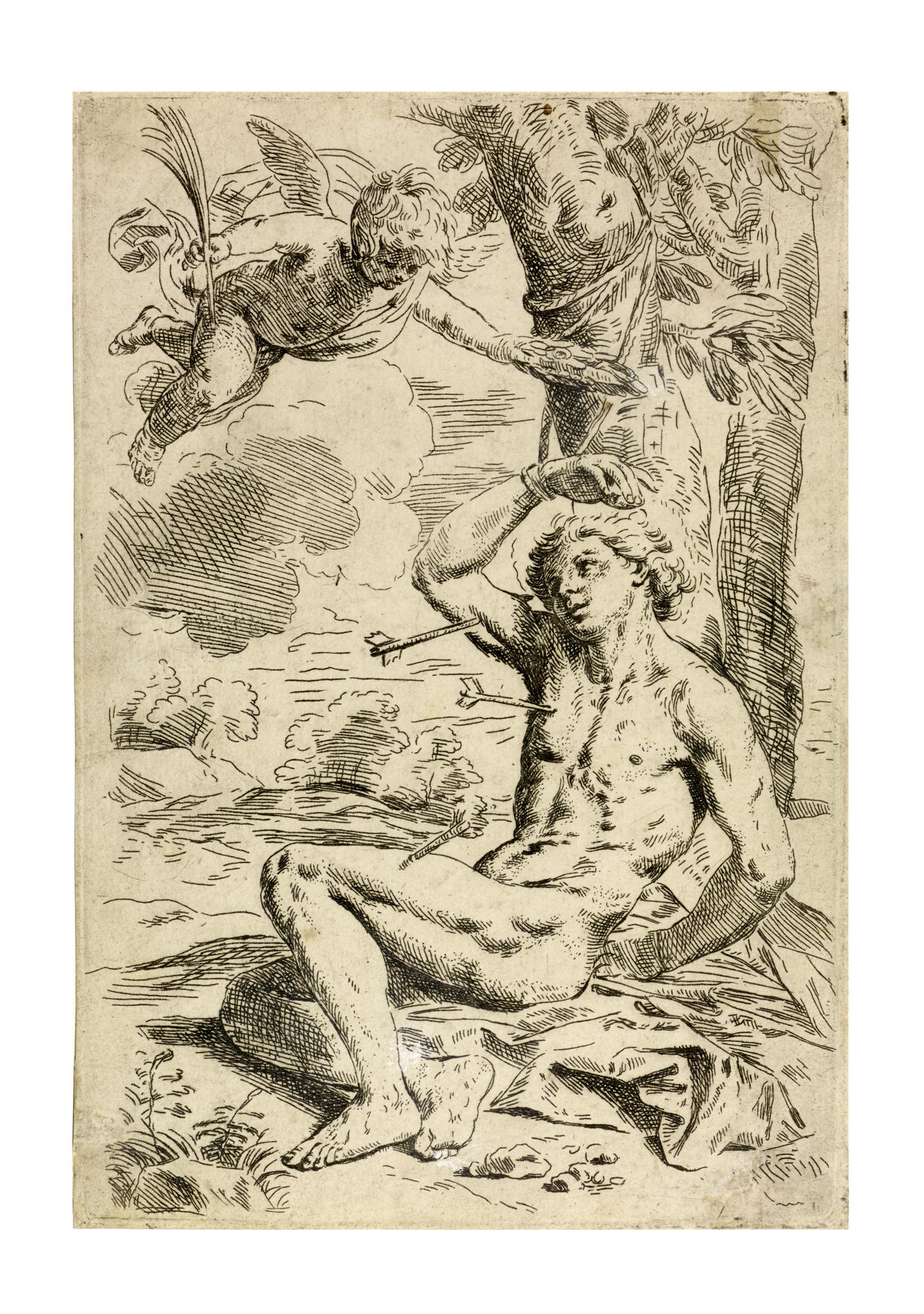 Simone Cantarini (1612 - 1648) SAN SEBASTIANO acquaforte, cm 19,8x13,2...