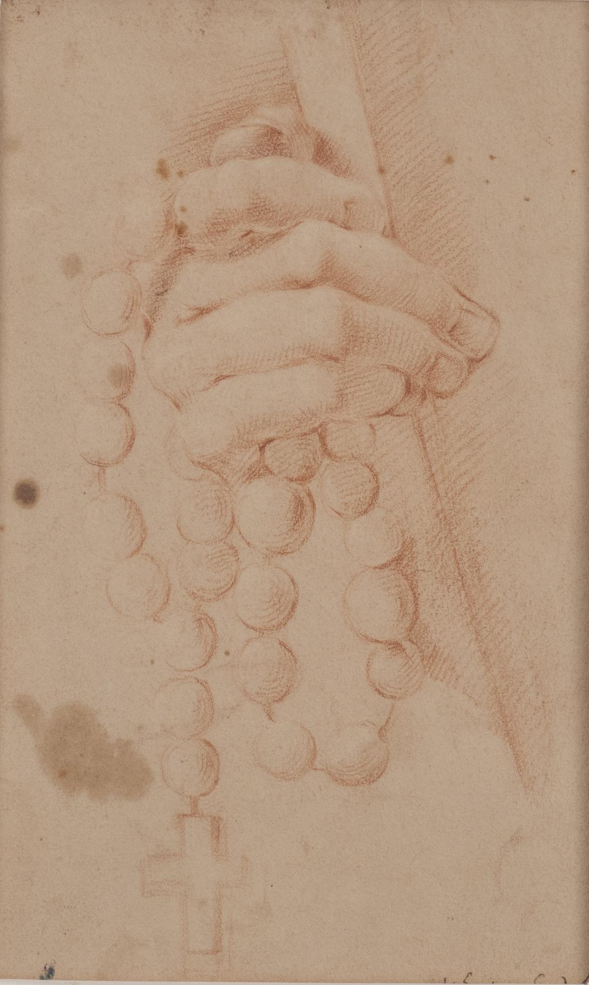 Gaetano Gandolfi (1734 - 1802) STUDIO DI MANO CON ROSARIO sanguigna su carta,...