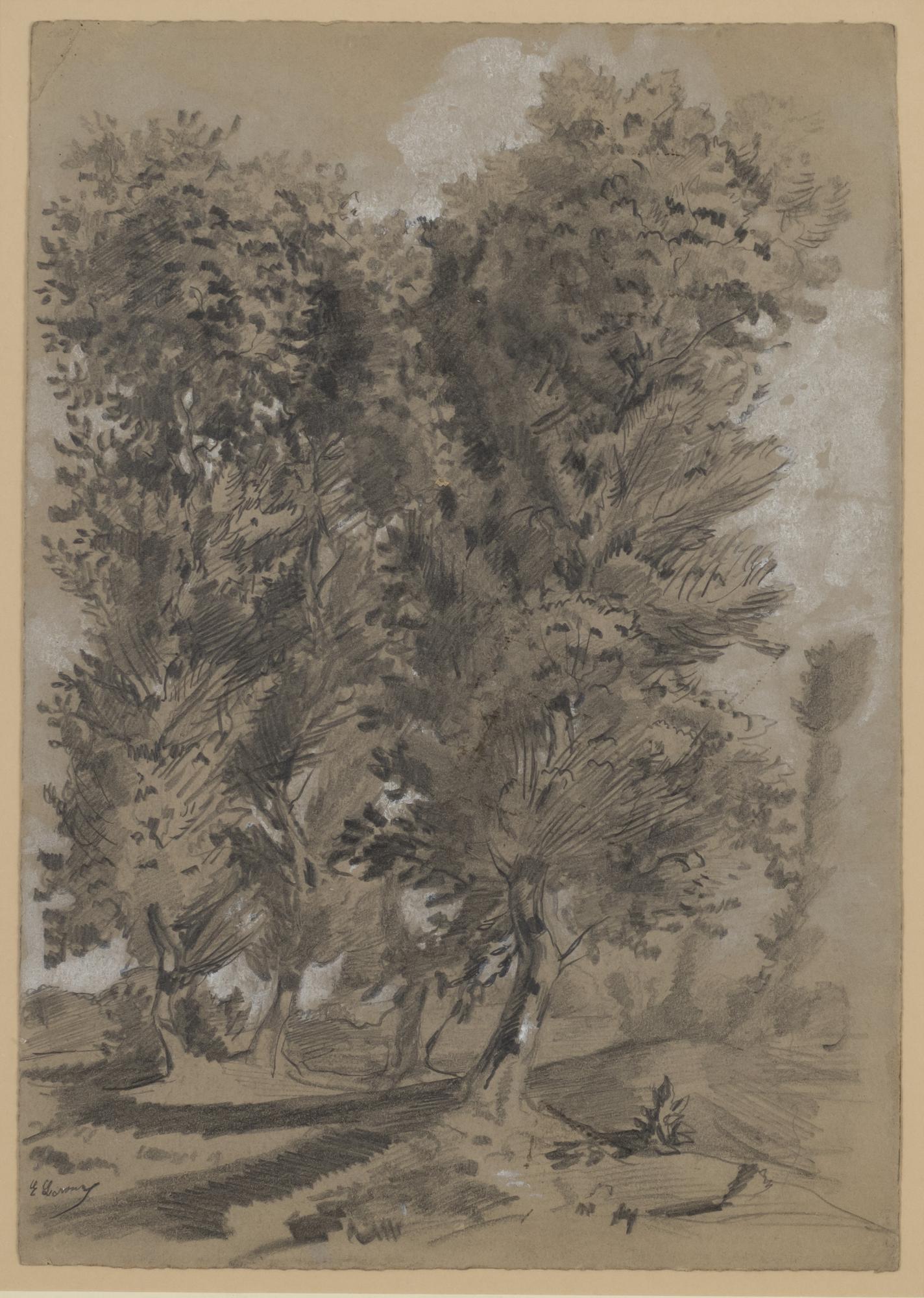 Alberi, grafite e biacca su carta, cm 20x27, firmato