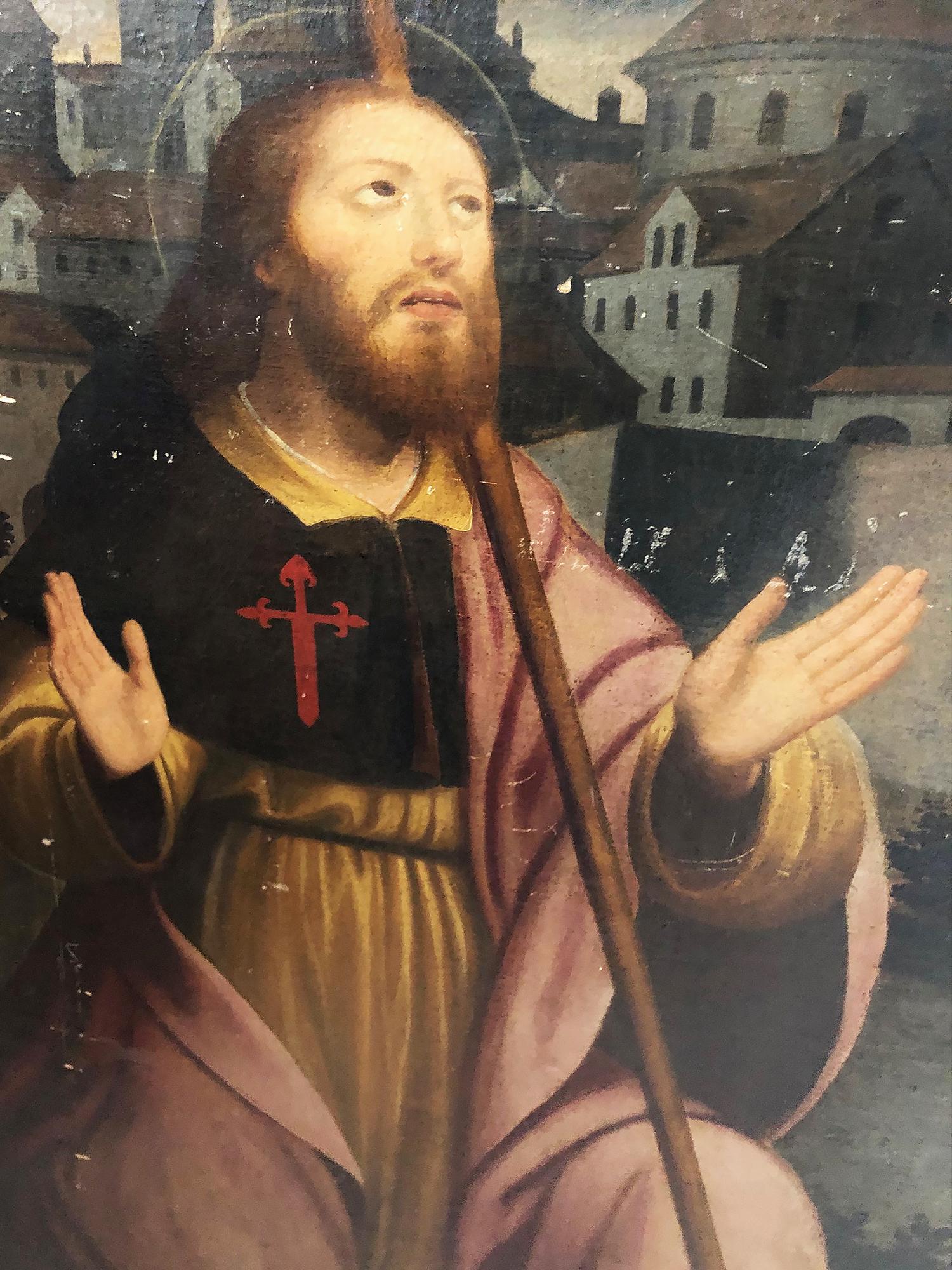 Scuola Piemontese del XVI secolo SAN GIACOMO IL MAGGIORE olio su tavola, cm...