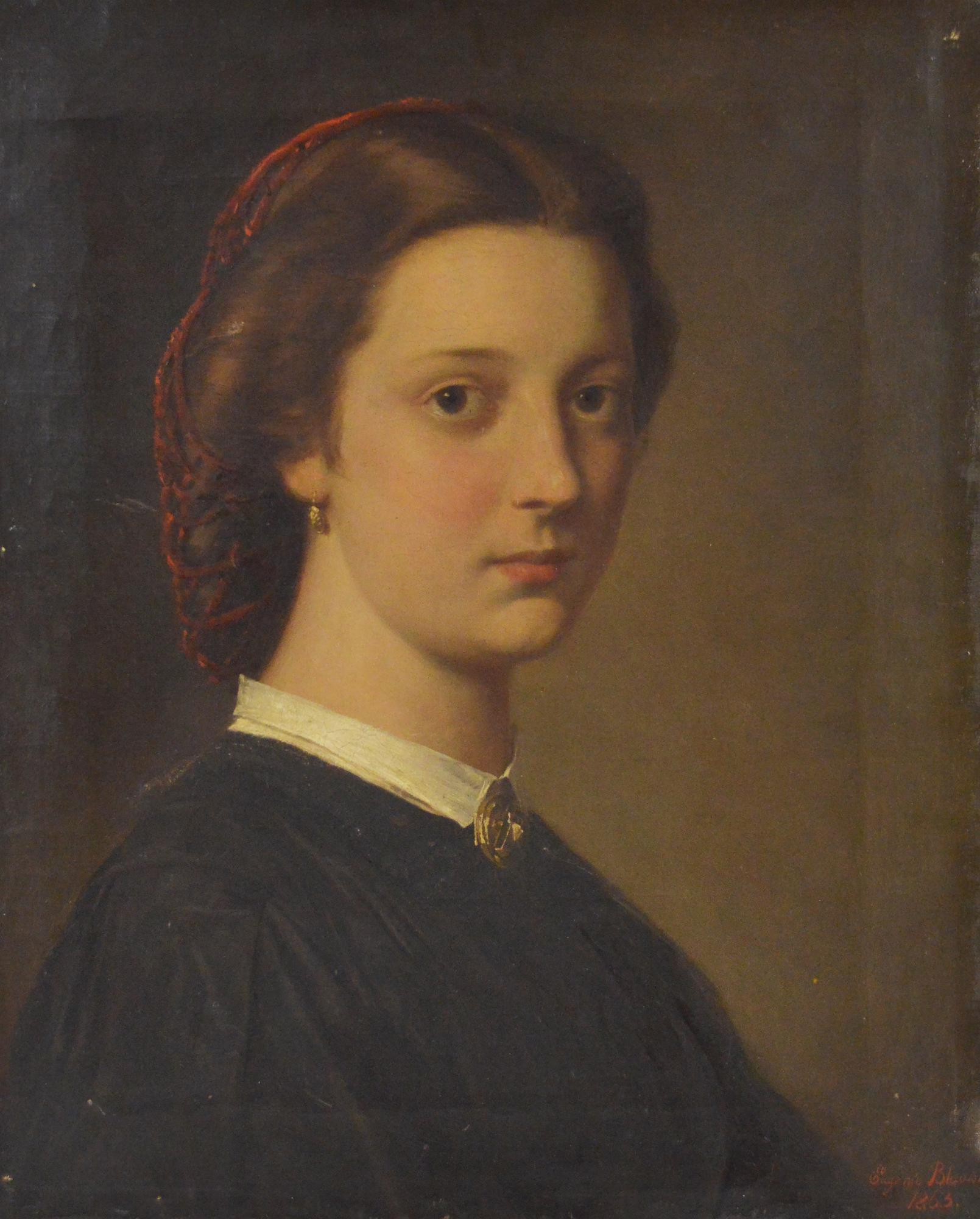 Eugenio De Blaas (1843 - 1931) RITRATTO FEMMINILE olio su tela, cm 48x40...