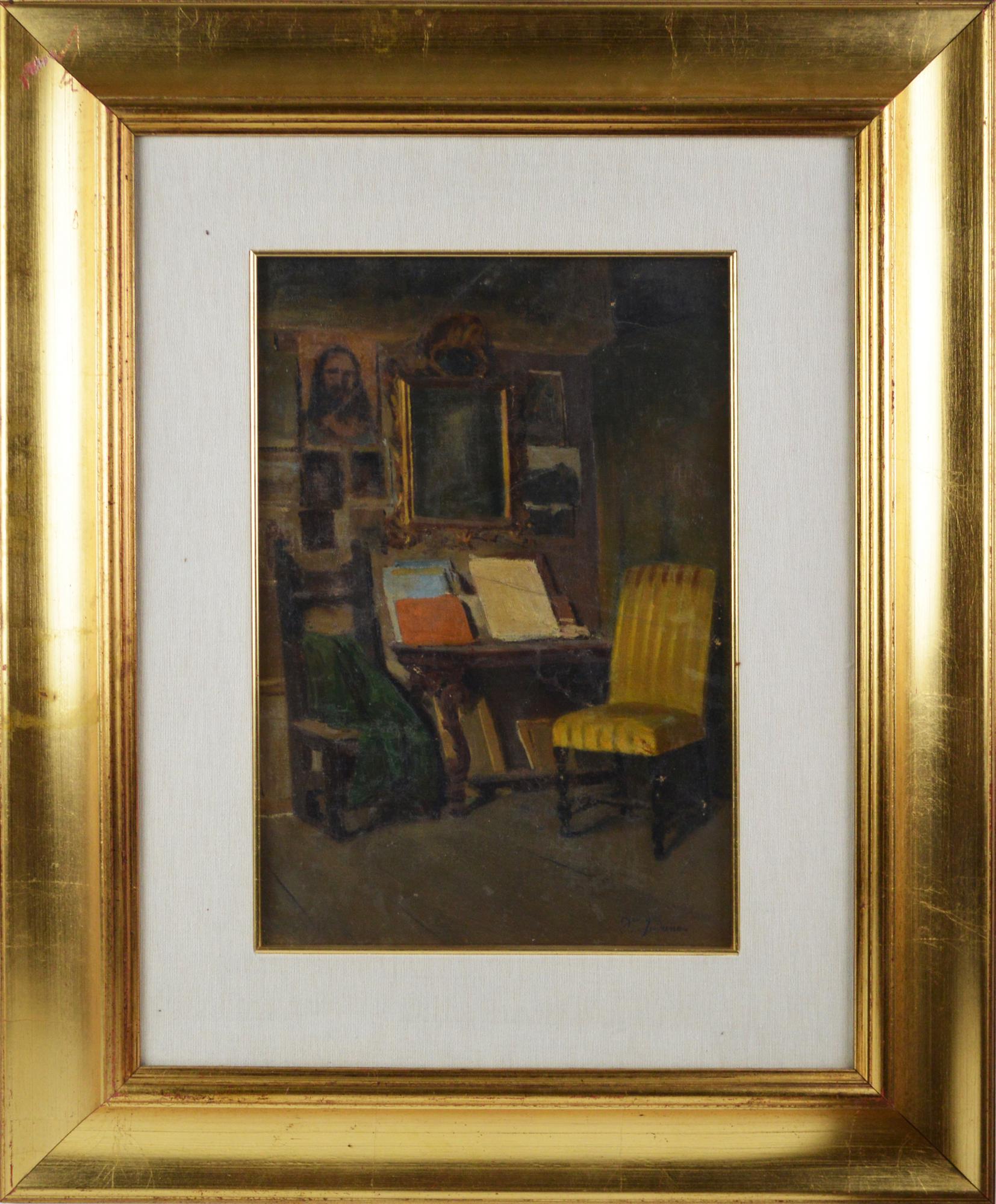 Domenico Induno (1815 - 1878) LO STUDIO DEL PITTORE olio su cartone telato,...