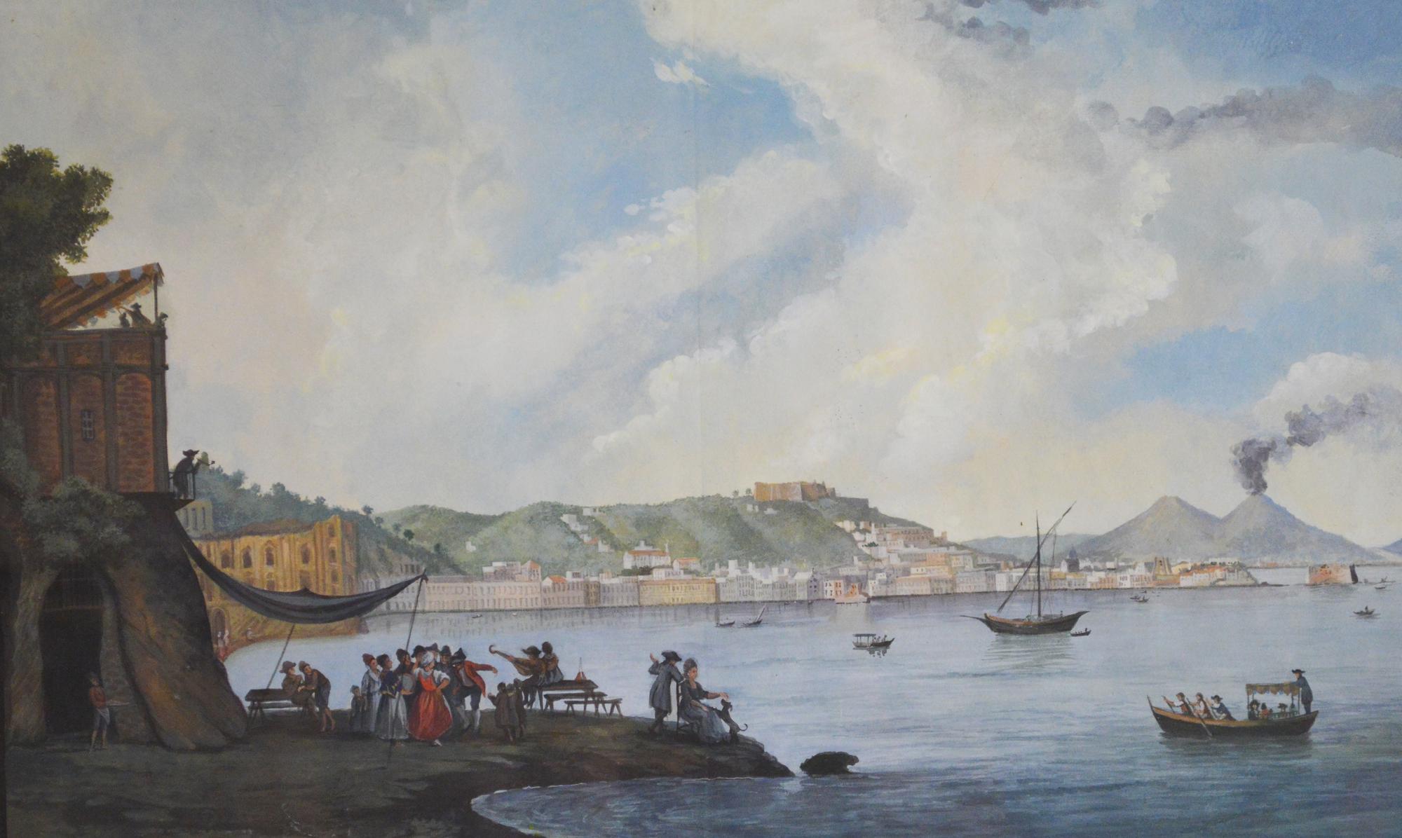 Scuola Napoletana del XIX secolo VEDUTA DI NAPOLI CON IL VESUVIO gouache su...