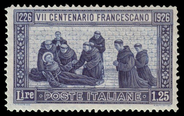 REGNO D'ITALIA 1926 "San Francesco". 1,25 lire azzurro D. 13½ Provenienza Coll