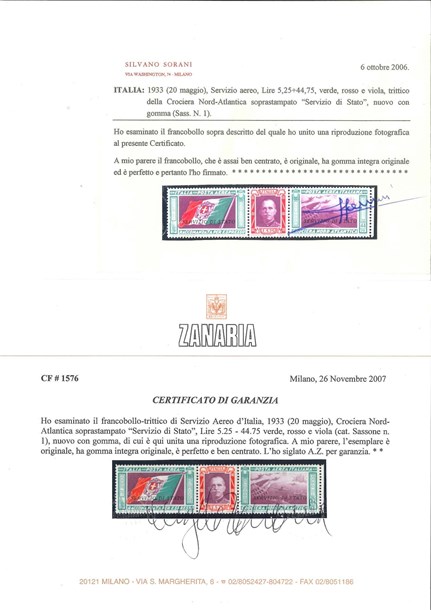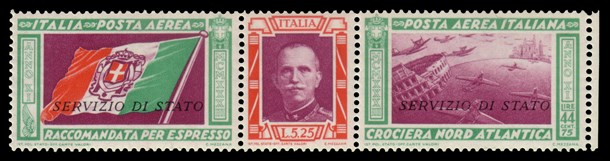 Posta aerea di servizio "Crociera del Decennale". Trittico 5,25+44,75 lire soprastampato "SERVIZIO DI STATO"