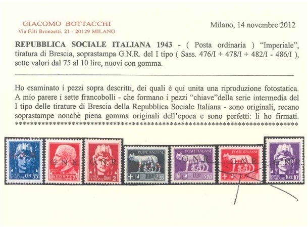 R.S.I. 1943 Tiratura di Brescia "Imperiale". Serie di 16 valori con soprastampa