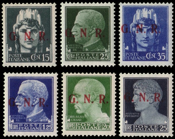"Imperiale". Serie completa di 6 valori con soprastampa "G.N.R." del III tipo