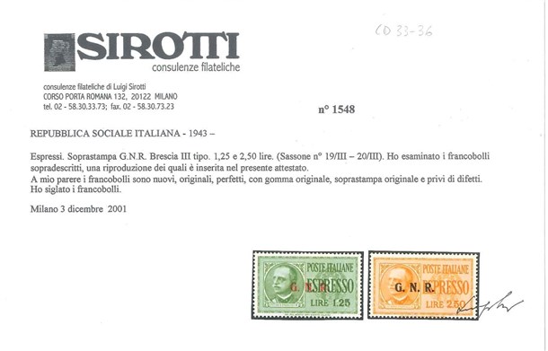 Espressi. Serie completa di 2 valori con soprastampa "G.N.R." del III tipo