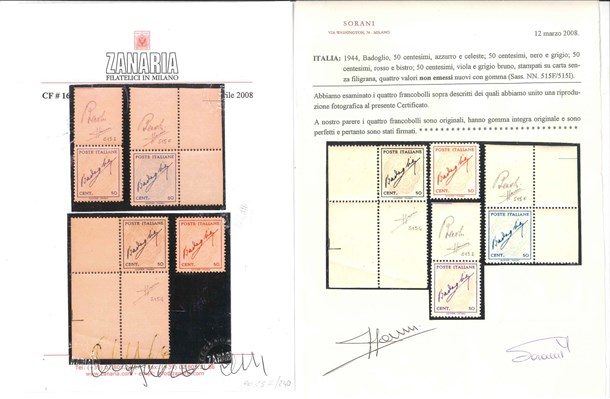 "FIrma di Badoglio". Serie completa di 4 valori, senza filigrana