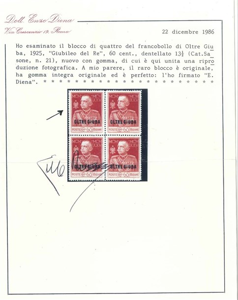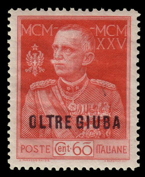 OLTRE GIUBA 1925 "Giubileo del Re". 60c. carminio D.13½ Ottima centratura. Pro