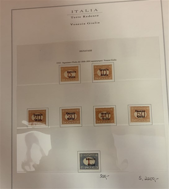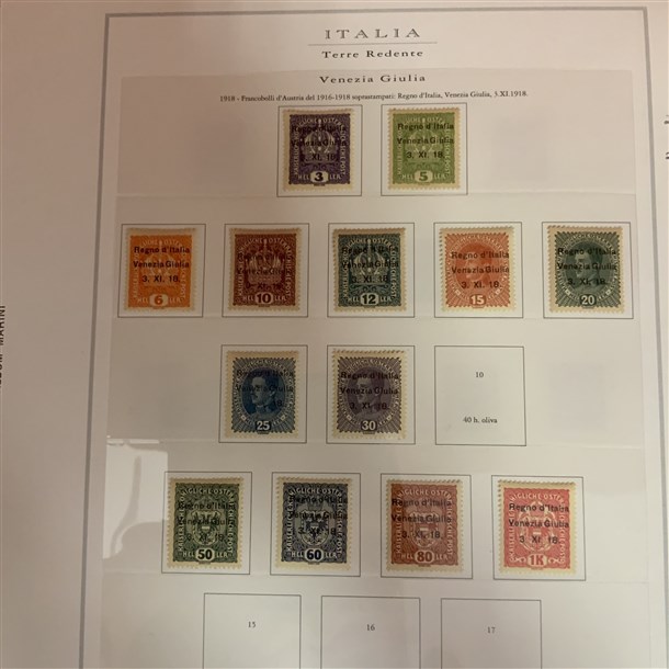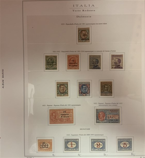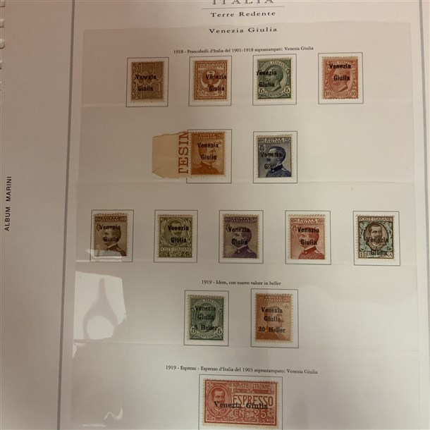 Le collezioni non complete di Trentino, Venezia Giulia, Trento e Trieste, Dalmazia. Materiale di ottima qualità montato su fogli d'album Marini. Da esaminare