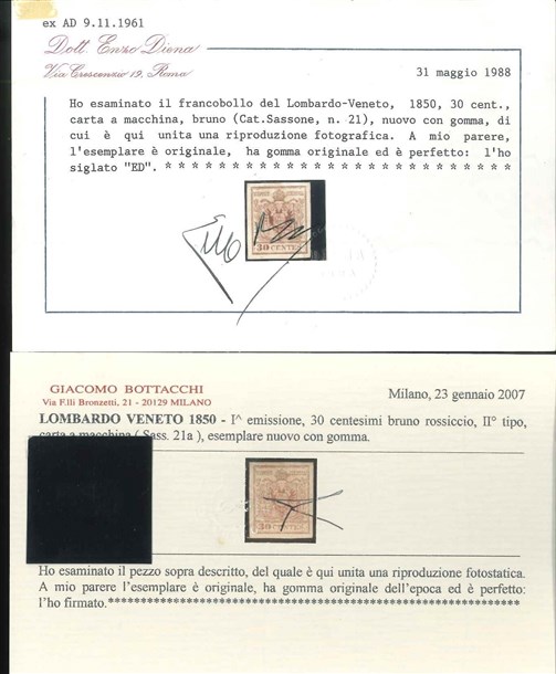 LOMBARDO-VENETO 1854/1857 30c. bruno rossiccio II tipo, carta a macchina Prove