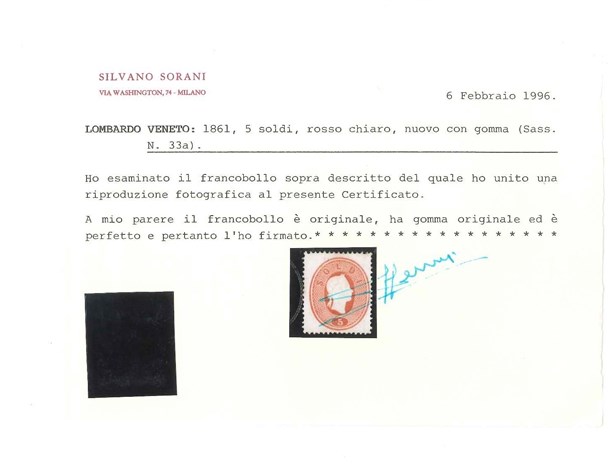 LOMBARDO-VENETO 1861 5s. rosso chiaro Provenienza Collezione "Nimue" Cert. S