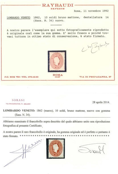 Lotto 141 | LOMBARDO-VENETO 1862 10s. bruno mattone Provenienza Collezione "Nimue" Cert.