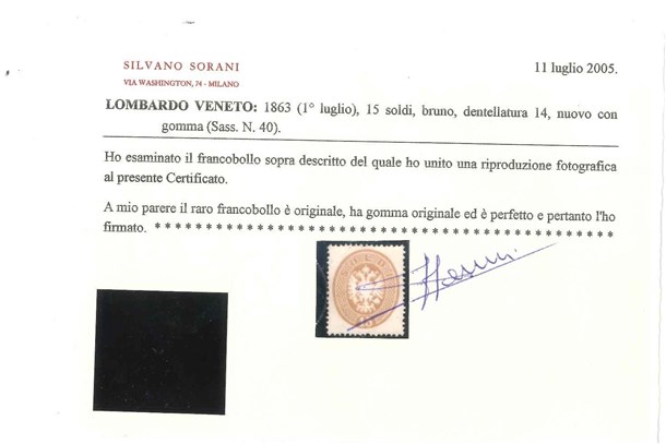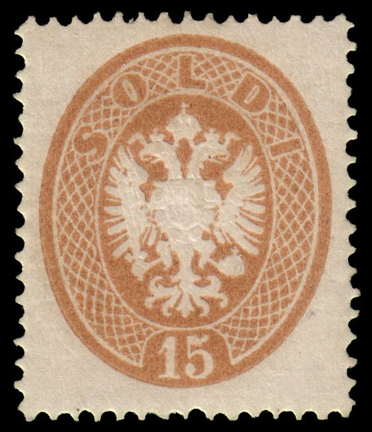 LOMBARDO-VENETO 1863 15s. bruno D.14 Provenienza Collezione "Nimue" Cert. S.
