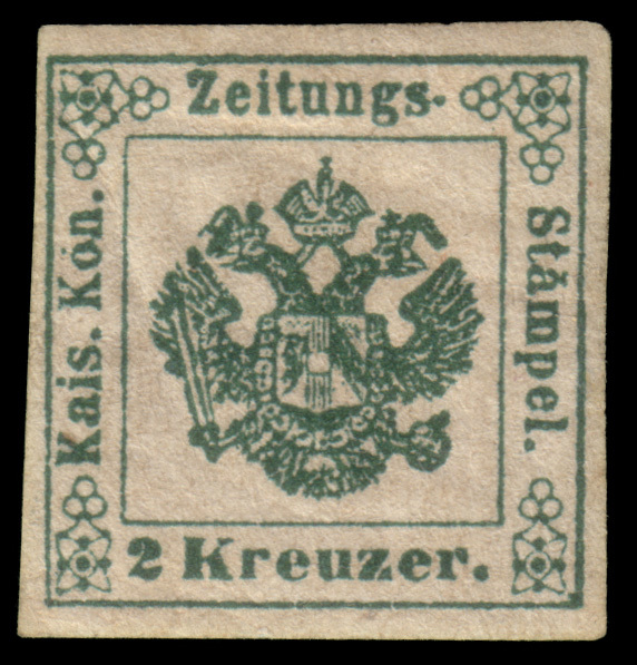 Segnatasse giornali. 2kr. verde scuro, II sottotipo