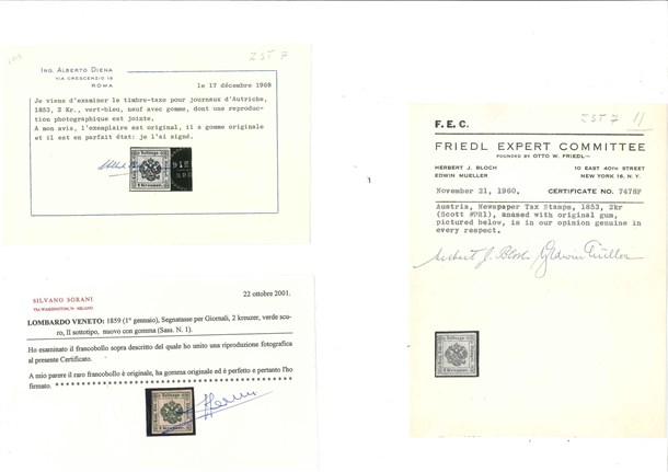 Cert. A. Diena, S. Sorani, Friedl. Firma A. Zanaria