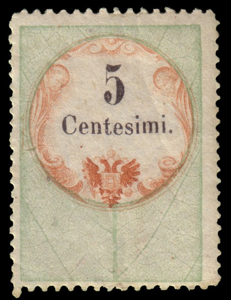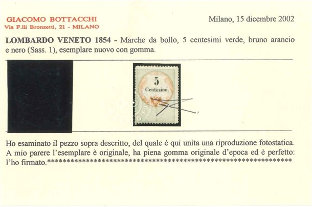 LOMBARDO-VENETO 1854 Marche da bollo. Caratteri tipografici. 5c. verde, bruno a