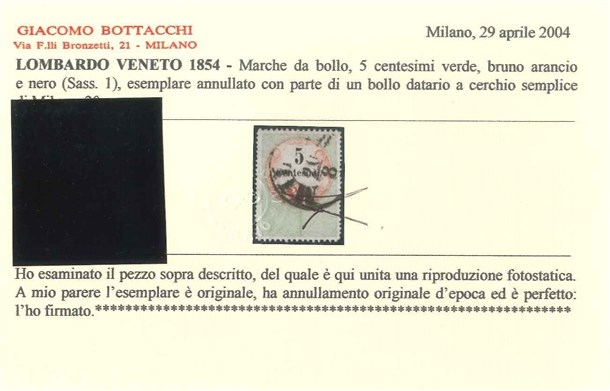 LOMBARDO-VENETO 1854 Marche da bollo. Caratteri tipografici. 5c. verde bruno ar