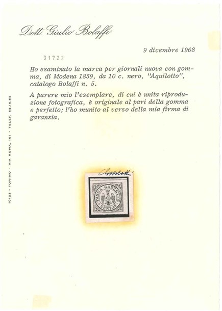 Lotto 169 | MODENA 1859 Segnatasse giornali. 10c. nero, filo di separazione orizzontale Pr