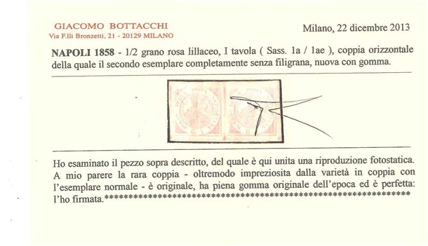 NAPOLI 1858 ½gr. rosa lillaceo, coppia orizzontale della quale il secondo esemp