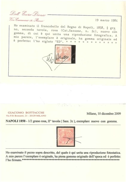 NAPOLI 1858 ½gr. rosa, II tavola Provenienza Collezione "Nimue" Cert. En. Di