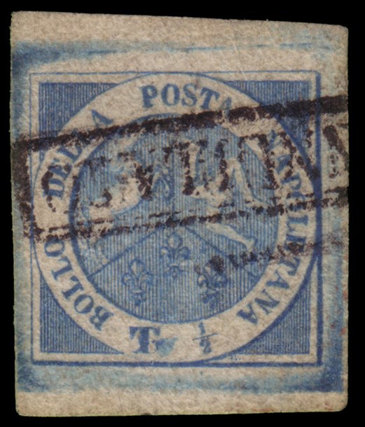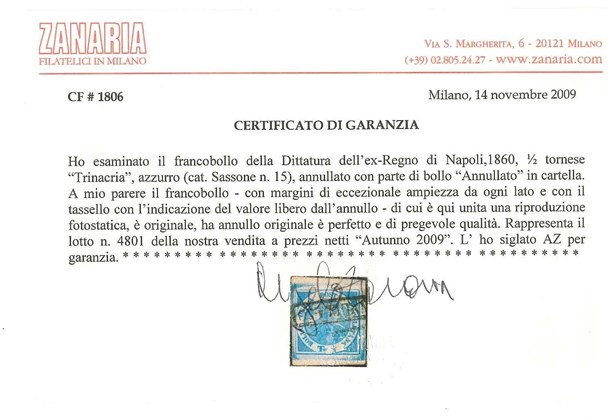 NAPOLI 1860 Dittatura. ½t. azzurro "Trinacria" Esemplare con margini eccezional