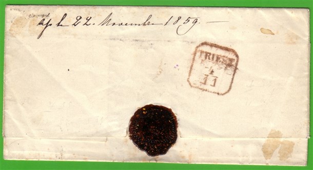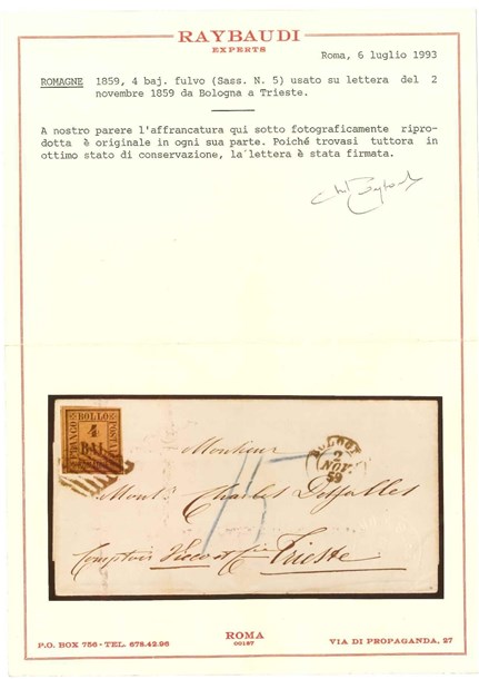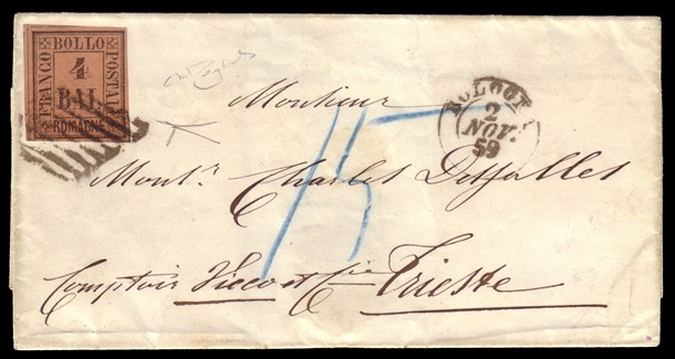 ROMAGNE 1859 (2 nov.) Lettera senza testo, da Bologna per Trieste, affrancata c