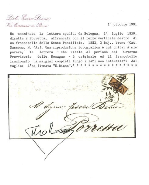ROMAGNE 1859 (14 lug.) Uso dei francobolli dello Stato Pontificio dopo la costi