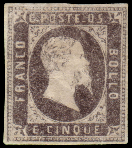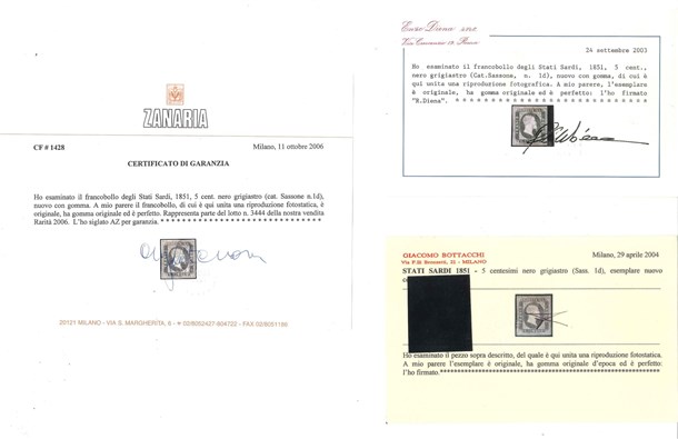 SARDEGNA 1851 5c. nero grigiastro Provenienza Collezione "Nimue" Cert. R. Di