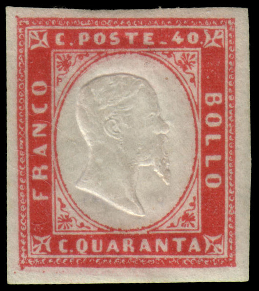 SARDEGNA 1860 40c. carminio Provenienza Collezione "Nimue" Firma S. Sorani