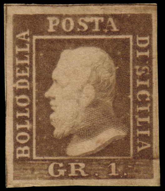 1gr. bruno olivastro, I tavola, II stato, carta di Napoli