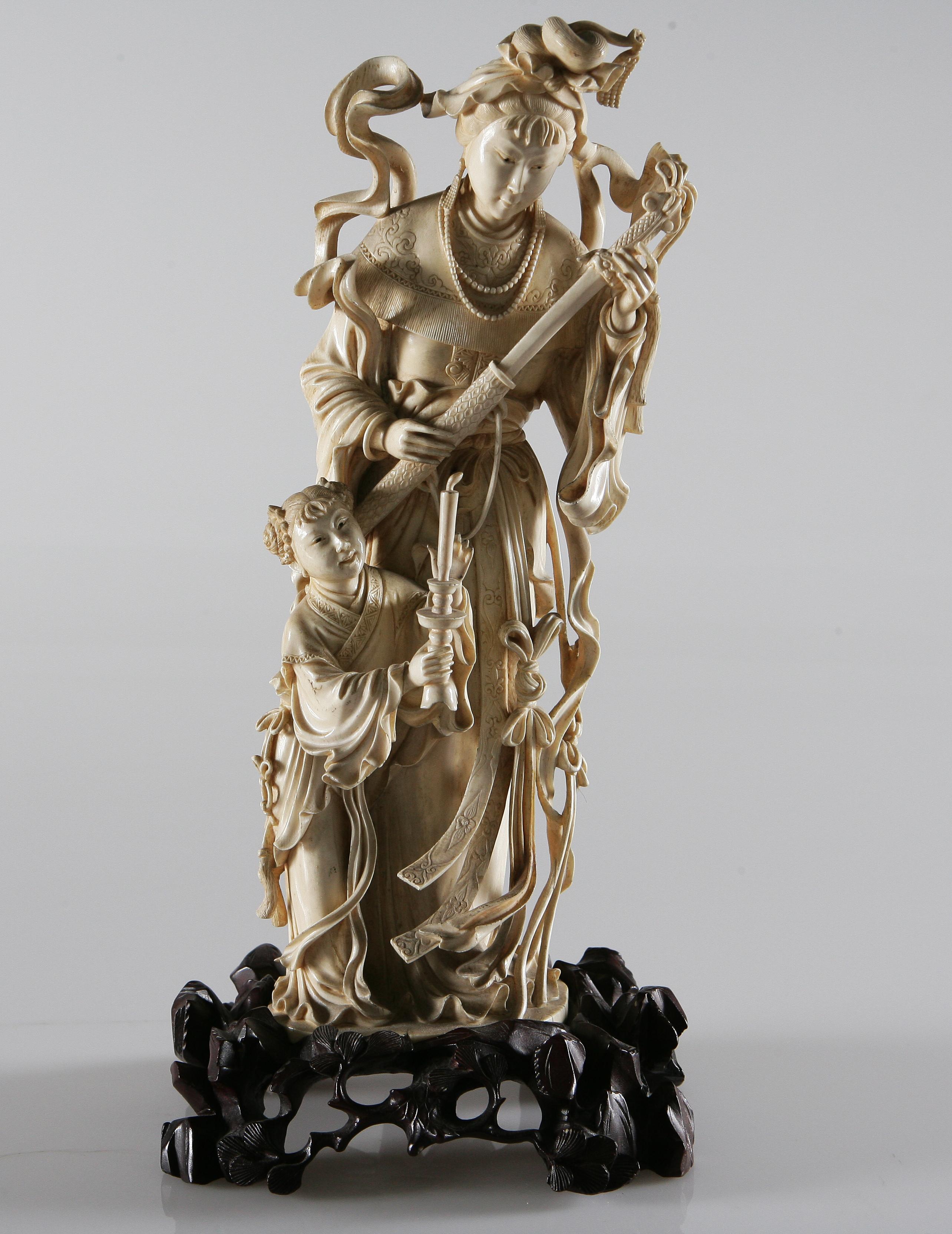 MANIFATTURA GIAPPONESE DELLA FINE DEL XIX SECOLO Figura di donna in avorio scolpito. Avorio. Cm 30x10x8.