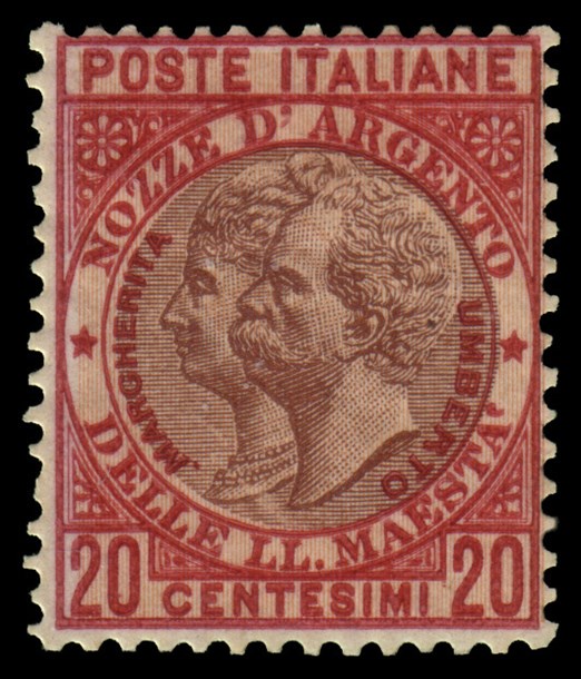 "Nozze di Re Umberto I". 20c. rosso bruno e bruno