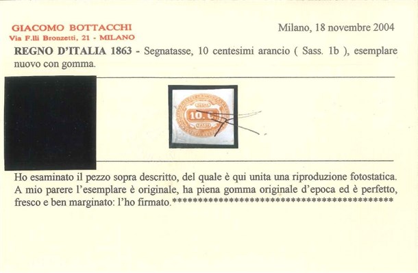 REGNO D'ITALIA 1863 Segnatasse. 10c. arancio Provenienza Collezione "Nimue"