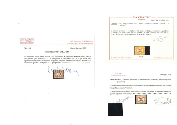 Lotto 306 | REGNO D'ITALIA 1870 Segnatasse. 30c. ocra e carminio Provenienza Collezione "N