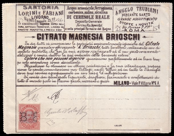 REGNO D'ITALIA 1887 Varietà francalettere. 8c./10c. carminio, francobollo con n