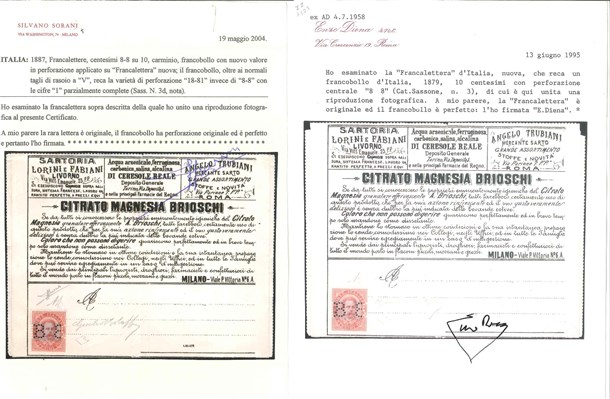 Cert. En. Diena, S. Sorani, A. Zanaria. Firma A. Diena, G. Bolaffi
