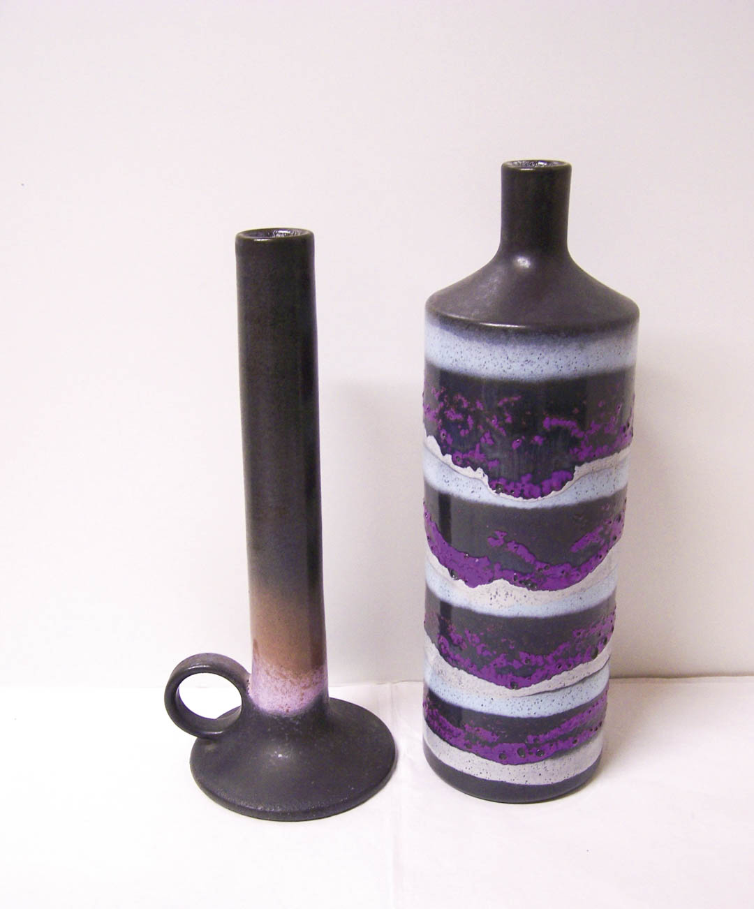 Pino Castagna (Castelgomberto 1932 – Costermano 2017) Set di candeliere e bottiglia, Anni ‘80/’90;a smalti policromi, h. candeliere 29 cm; bottiglia h. 32 cm, in perfette condizioni